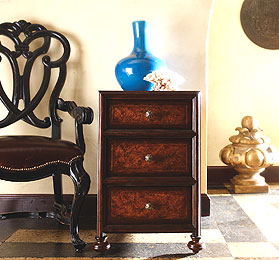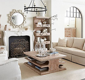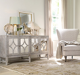 The eclectic collection of occasional pieces is extensive from practical cocktail and lamp tables to decorative consoles and mirrors. Many of the occasional pieces are featured in accent finishes beautifully highlighting the eclectic look.